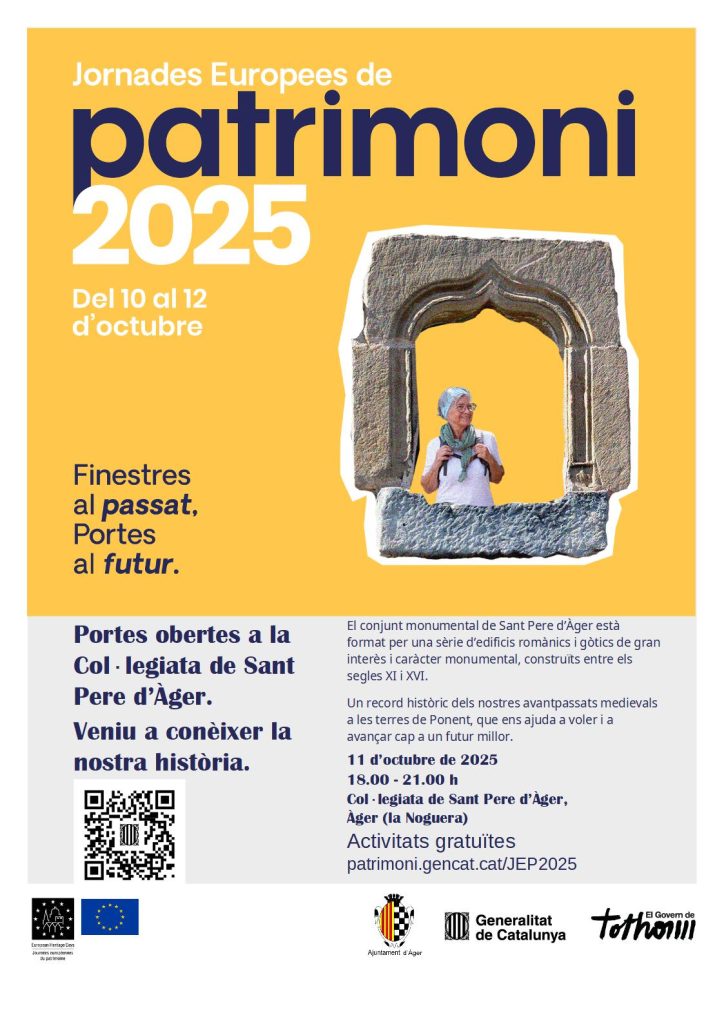 Del 10 al 12 d’octubre de 2025, Àger se suma un any més a les Jornades Europees de Patrimoni, una iniciativa que se celebra arreu de Catalunya i que convida a descobrir i gaudir del nostre patrimoni cultural amb activitats gratuïtes per a tots els públics.
